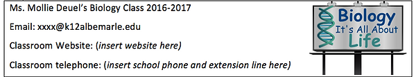 In my initial letter home (below), I invite families to come into our schools “back to school night.” During that time, I will have a sign in sheet (see example below) for parents to fill in their contact information, if for some reason I never received the return sheet from the letter home, with their contact information. I will also have an optional handout with my contact information, in case they misplaced my initial letter, or never received it. I also would like to encourage parents to feel free to ask me anything about the course or myself to show them that I am willing and excited to build a relationship with them throughout the next year.